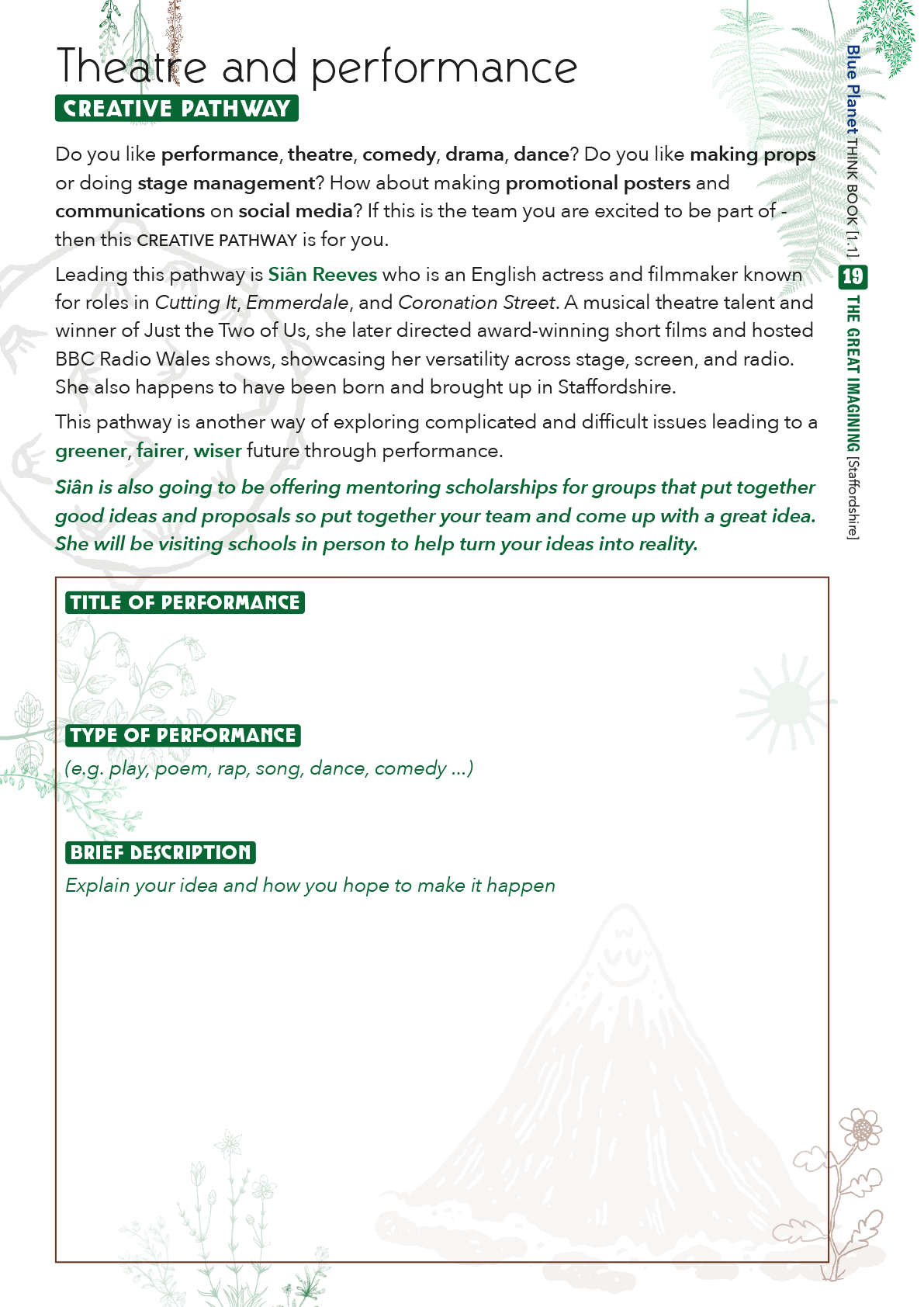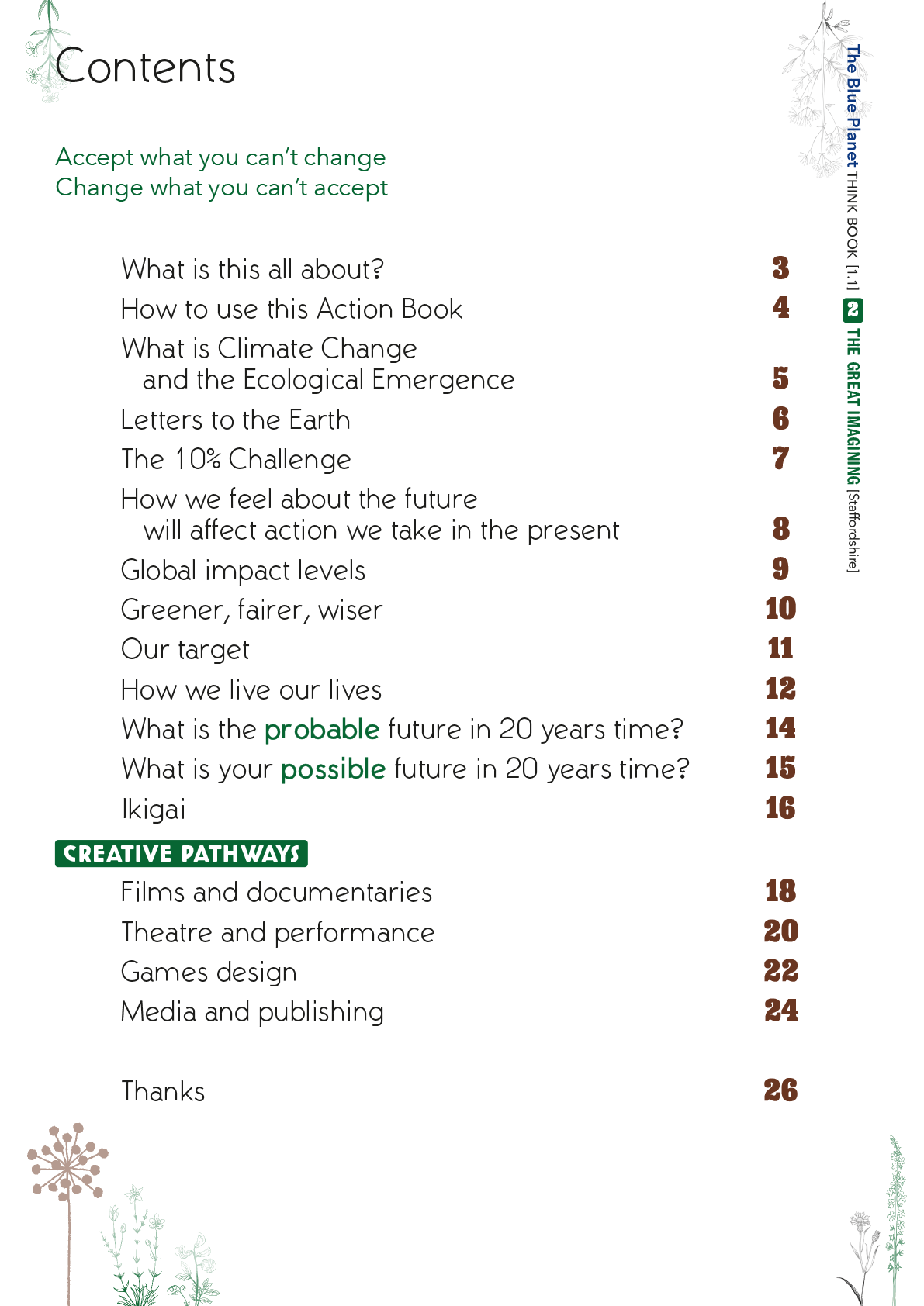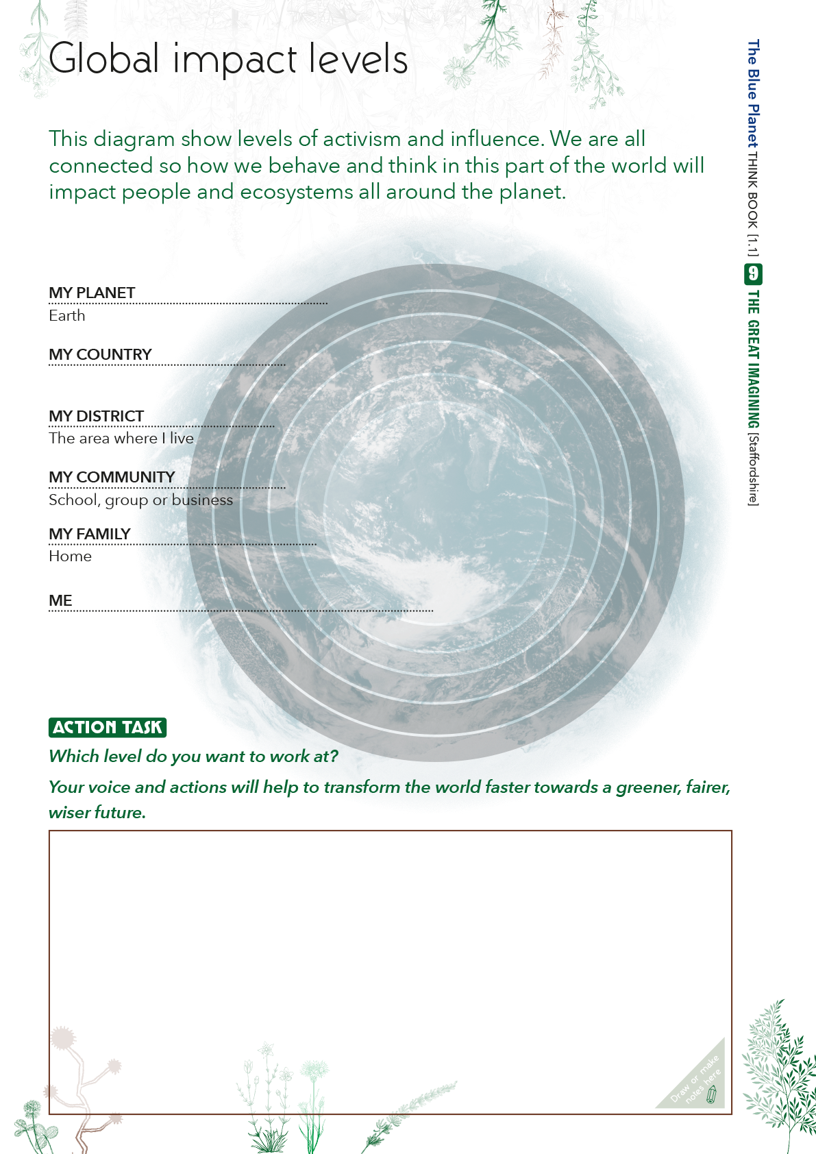 This ACTION BOOK will support the creative pathways to explore the big picture of our lives on earth and our context within the universe. What does it mean to be in the circle of life and the interconnectedness of all systems? We will be responding to these ideas as well as doing our own research through creating artworks, theatre and music or through student lead action such as creating campaigns to inspire others.