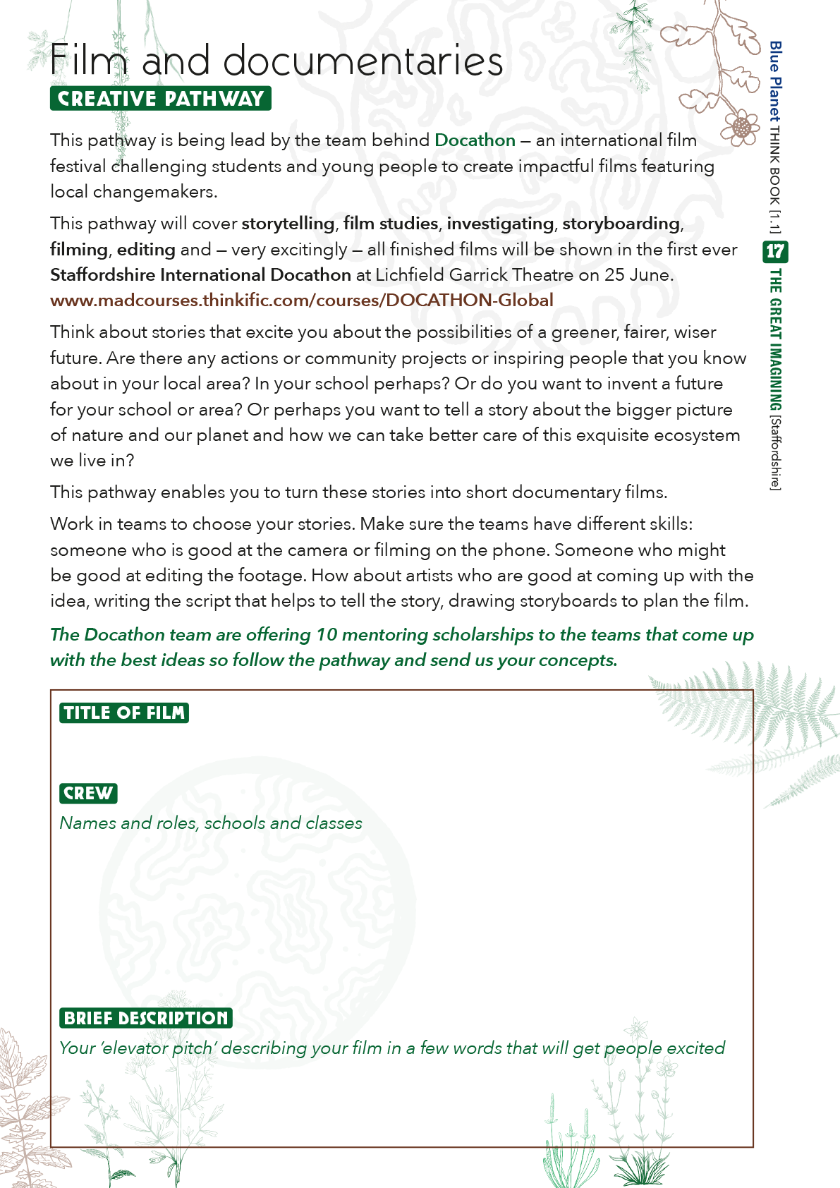 THE GREAT IMAGINING CREATIVE PATHWAYS offer opportunities to share ideas and projects with people of all ages, locally and globally. We are joining a vibrant international movement of people working together with fresh ideas and energy for a healthier planet.