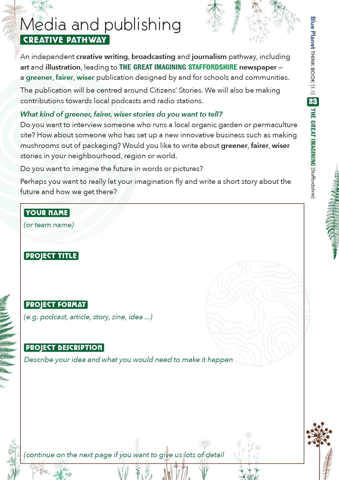 THE GREAT IMAGINING ACTION BOOKS are guides to imagining, exploring and taking action towards a greener, fairer, wiser future.
